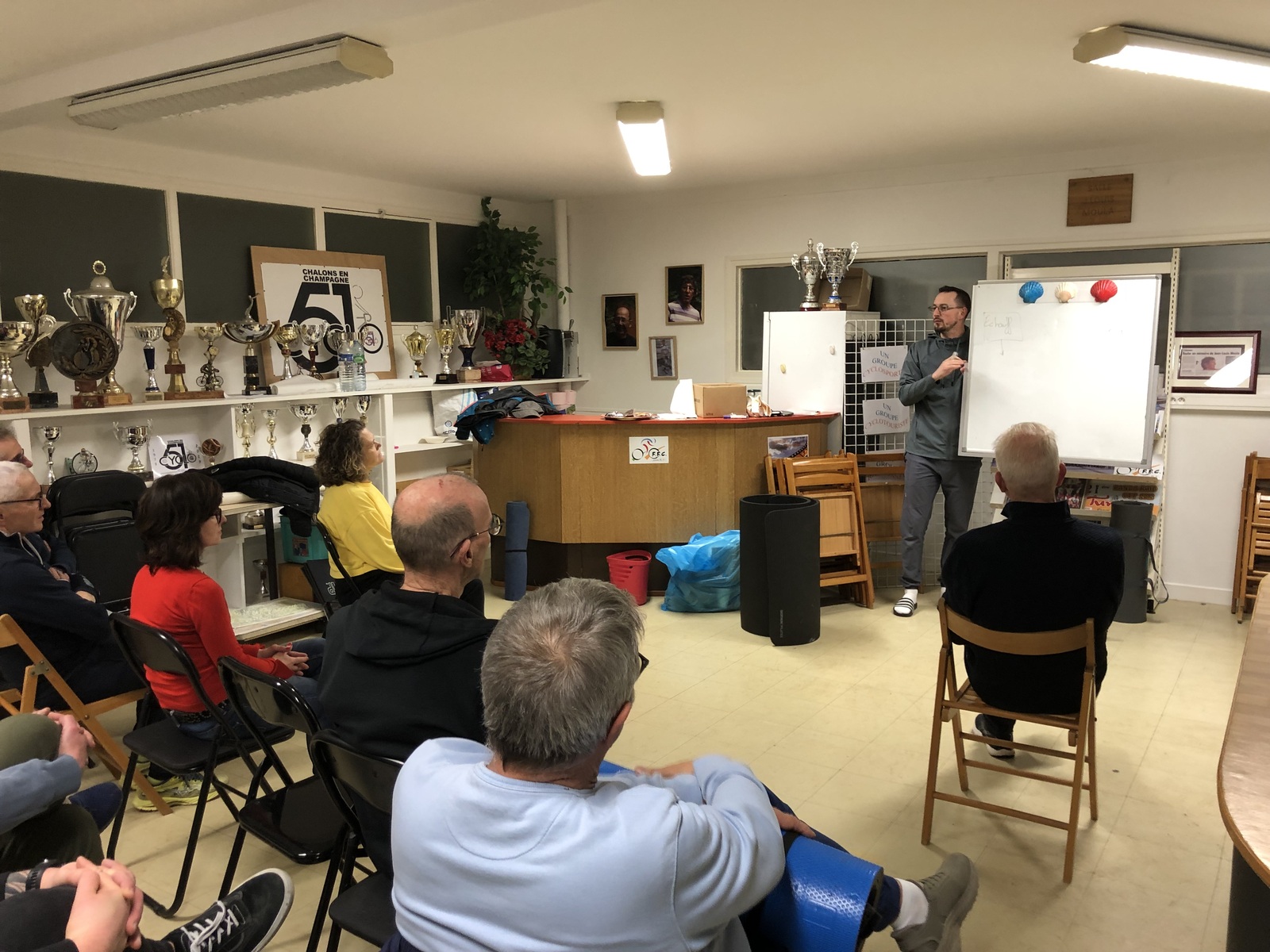 Vendredi 30 janvier, les adhérents du Cyclo 51 ont travaillé avec Kevin Lassale, ostéopathe spécialisé dans le sport,sur les bases d'un bon échauffement avec une phase théorique et une phase d’exercices.