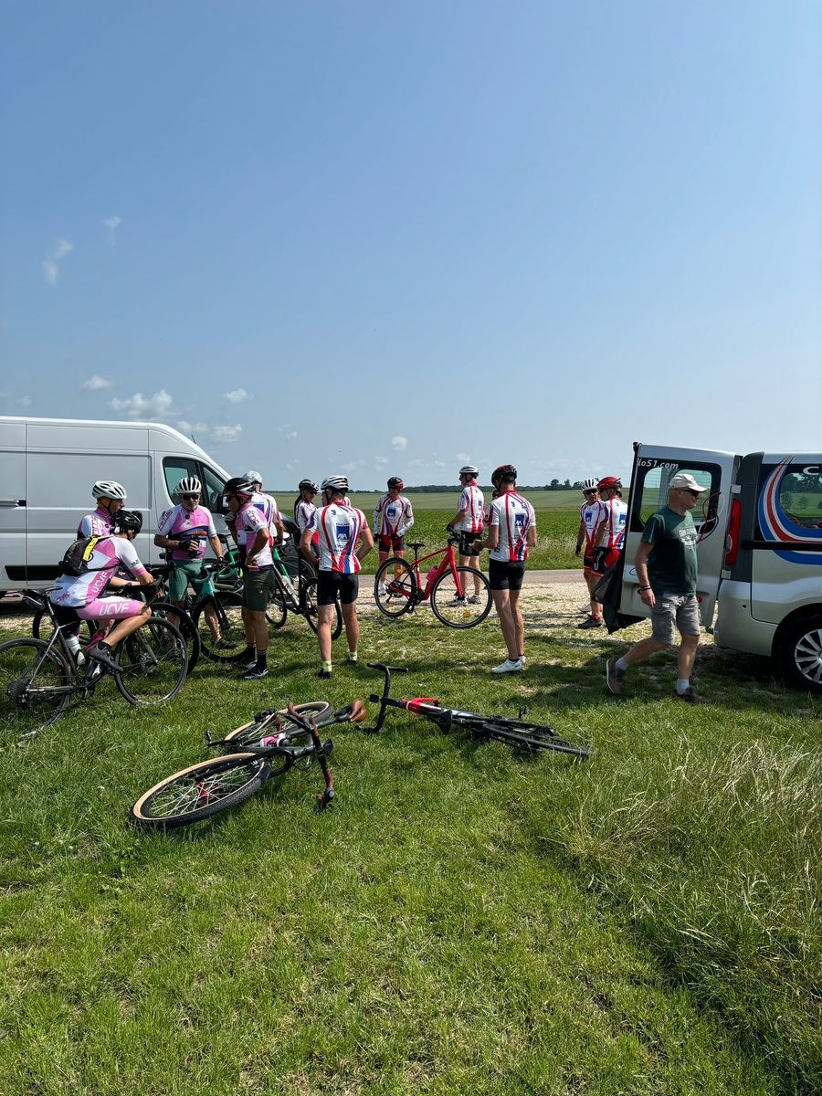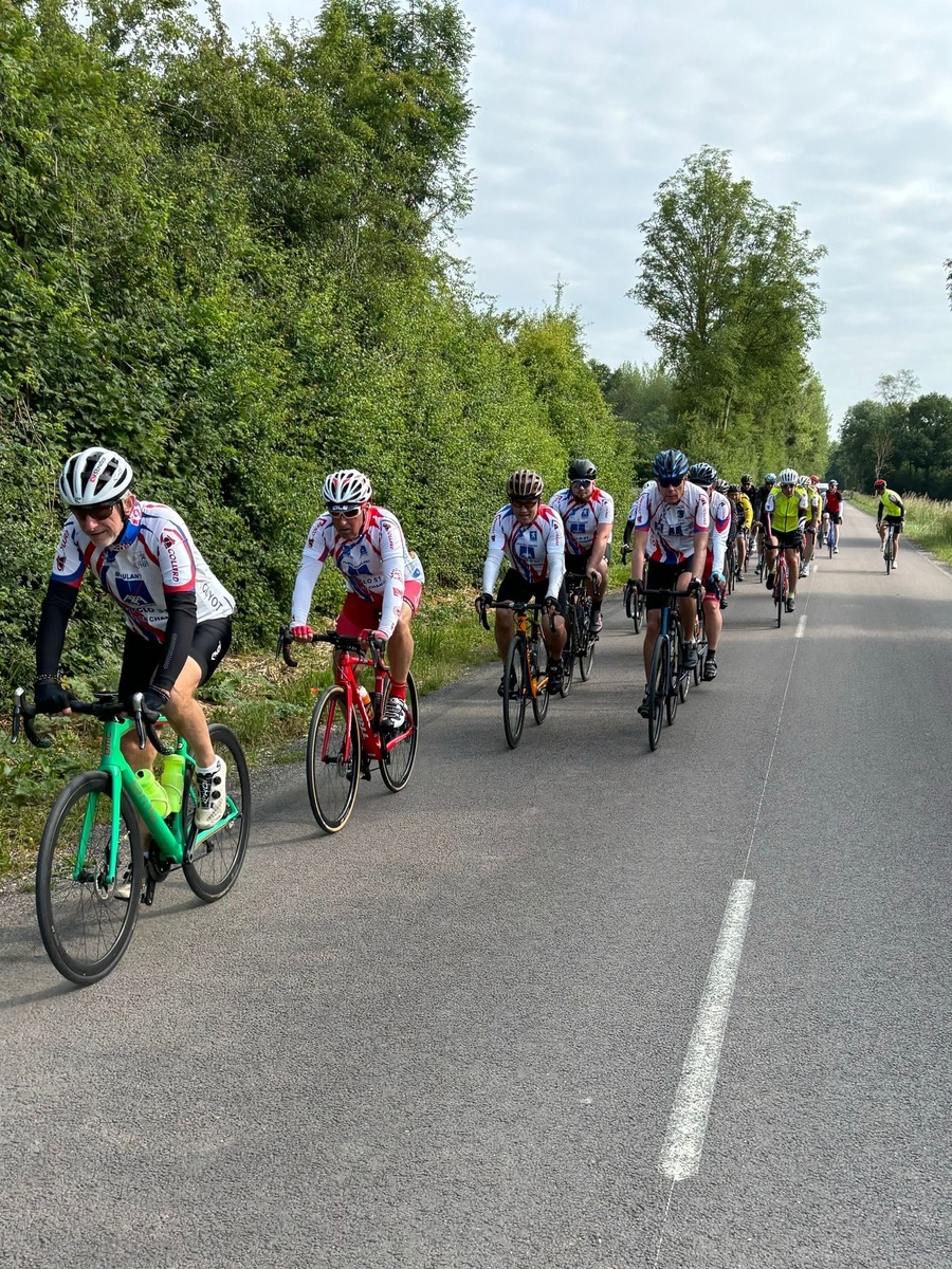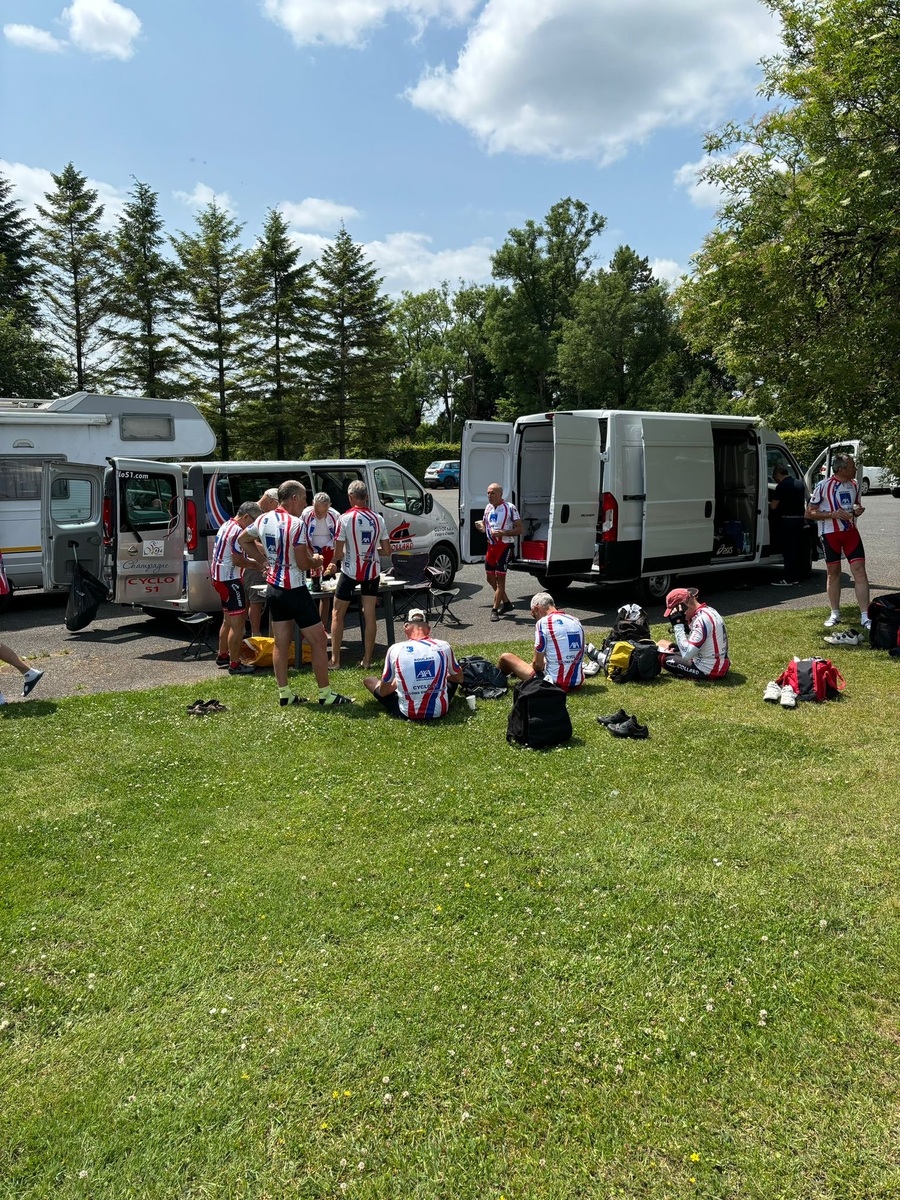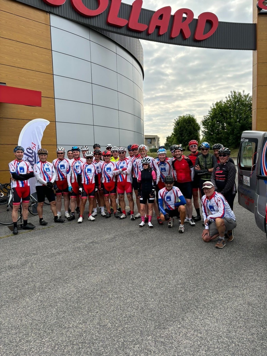 Départ à 8h30 pour les 11 adhérents qui vont parcourir 900 km pour rejoindre l'Alpe d'Huez, accompagnés par 18 adhérents sur une partie de parcours, puis rejoints par des amis vitryas, pour un peloton de 40 unités.