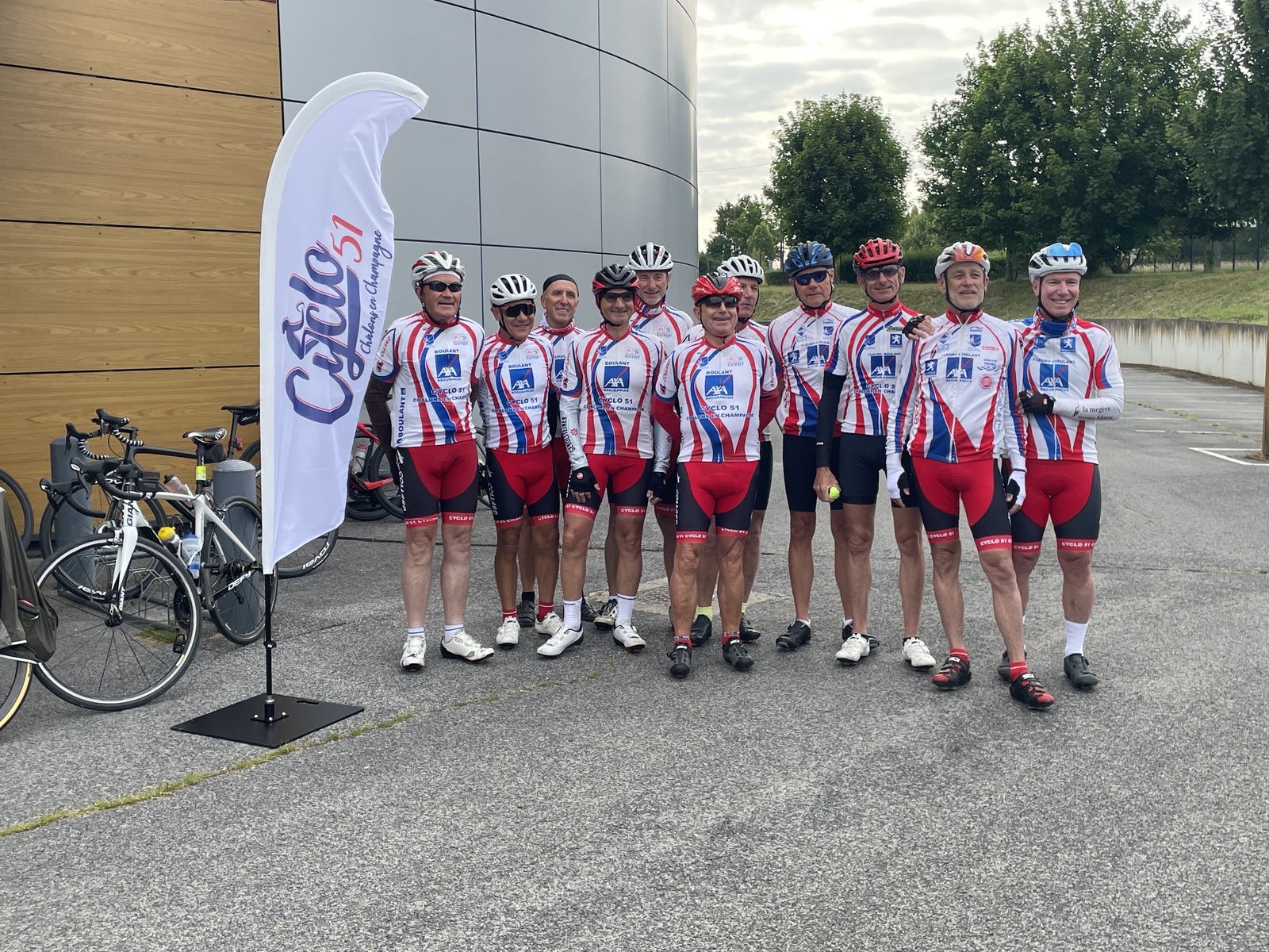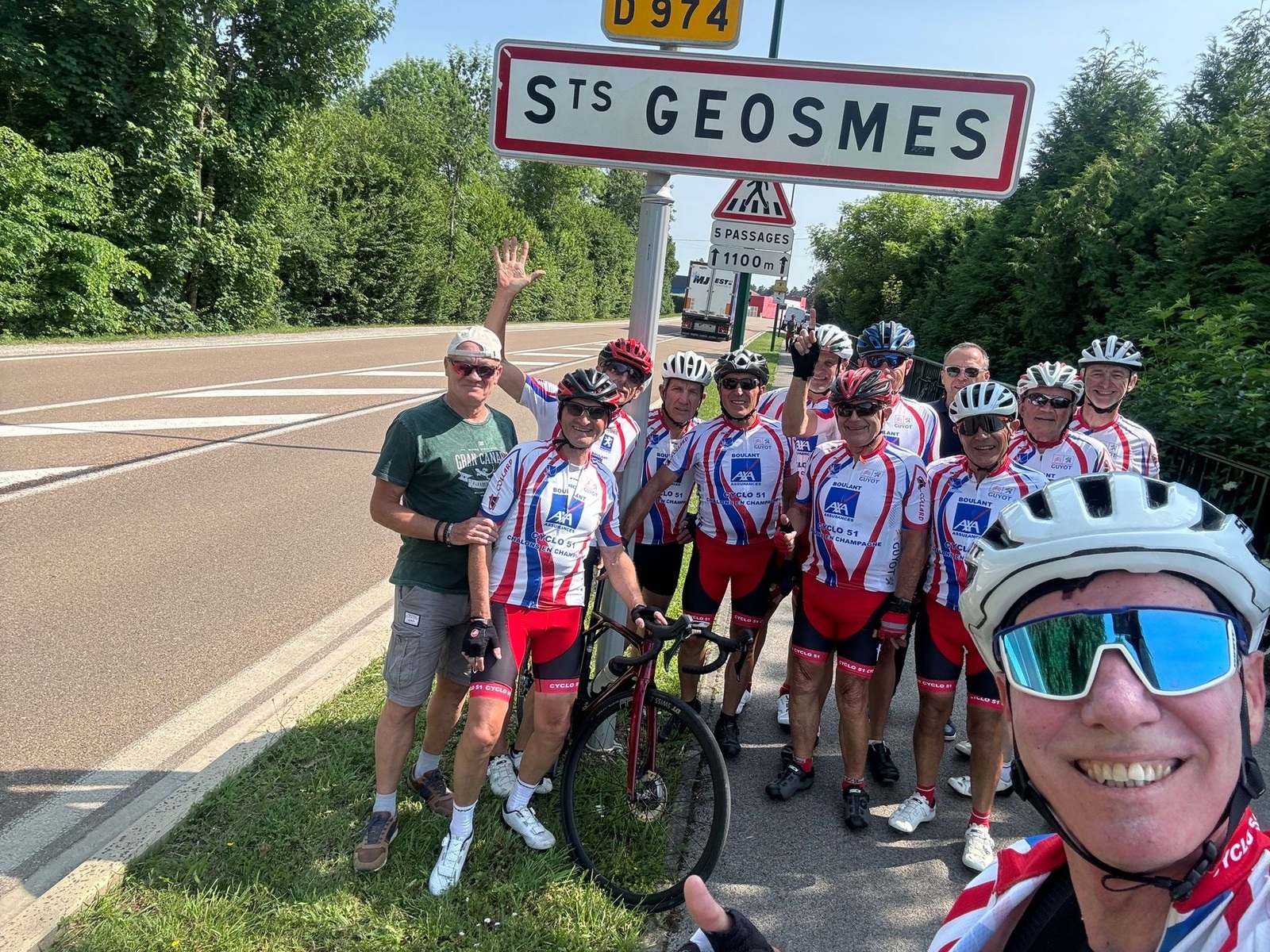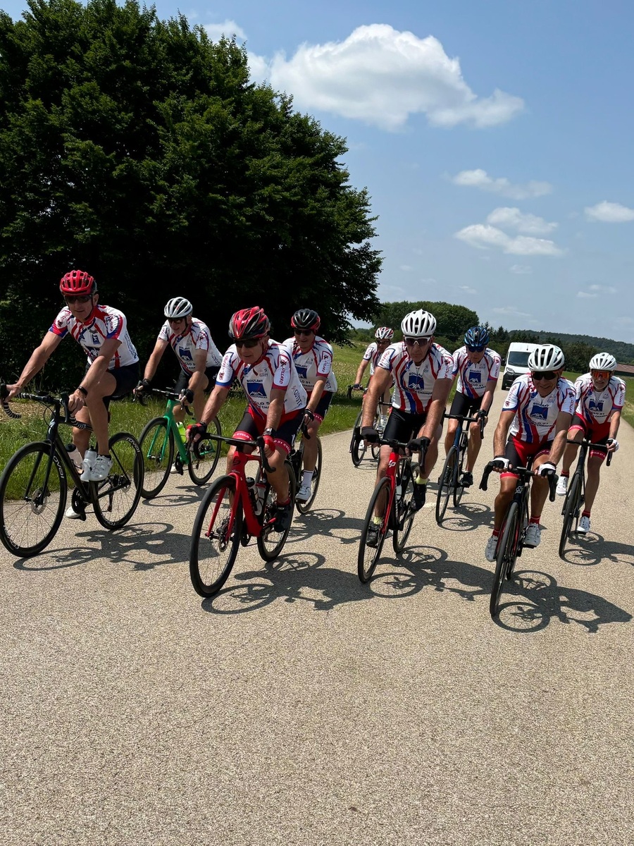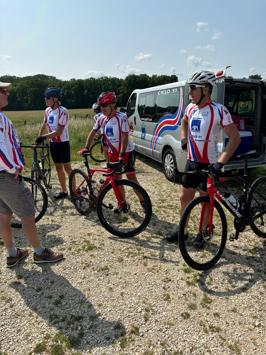 Départ à 8h30 pour les 11 adhérents qui vont parcourir 900 km pour rejoindre l'Alpe d'Huez, accompagnés par 18 adhérents sur une partie de parcours, puis rejoints par des amis vitryas, pour un peloton de 40 unités.